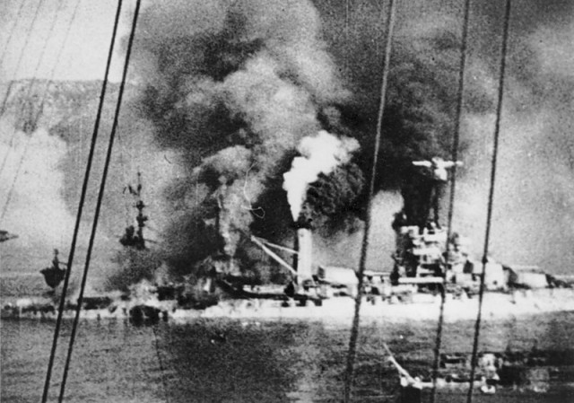 Фото- «Прованс» объятый пламенем в гавани Мерс-эль-Кебире