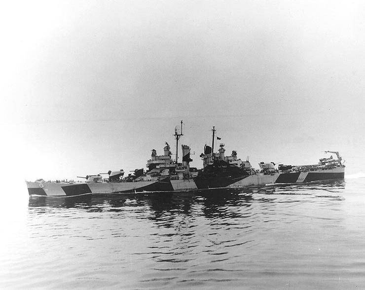 Операция «Факел» в составе Западного Оперативного Соединения. Затем служба на Тихом океане: кампании на Гуадалканале, бой у острова Реннел. 6 марта 1943 года вместе с крейсерами «Монпелье» и «Денвер» потопил японские эсминцы «Минегумо» и «Мурасаме». Затем операции на Соломоновых островах, Маотанских островах, Филиппинском море. Десантные операции на Палаване, Брунее, Минандао, Окинаве.