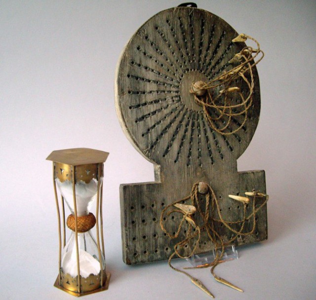 С ее помощью можно было записывать важнейшие события, произошедшие на корабле – смена курса или заступление на вахту и затем производить различные путевые вычисления. Вахтенная доска представляла собой простую деревянную доску, в которой просверливалось множество отверстий. На доске укреплялось несколько стержней, которые соответствовали различным событиям.