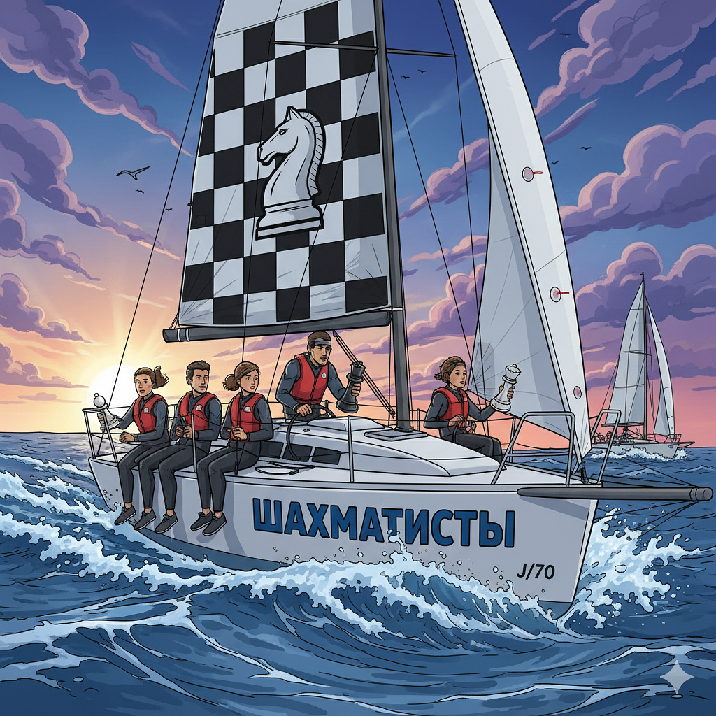 «Наша семья — я, муж и сын — любители играть в шахматы. Когда в нашем яхтенном хобби пошел прогресс, и мы поняли, что уже применяем тактическое и стратегическое мышление на воде, осознанно выбираем курс/галс в гонках, постоянно собраны и сконцентрированы, пришла ассоциация с шахматным семейным турниром. Кто-то в лодке сказал: „Ну прям как шахматисты“. Так и решили оставить это название».