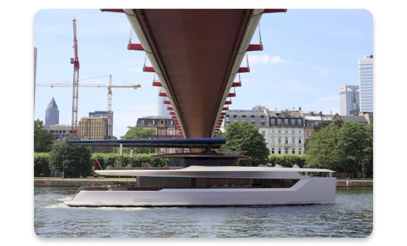 Когда крыло не работает, оно ложится горизонтально на крышу рубки, что позволяет снизить конструктивную высоту судна. Такое решение открывает возможность пройти даже под достаточно низкими мостами, что для любого плавательного средства, особенно с мачтой, является серьезным преимуществом.