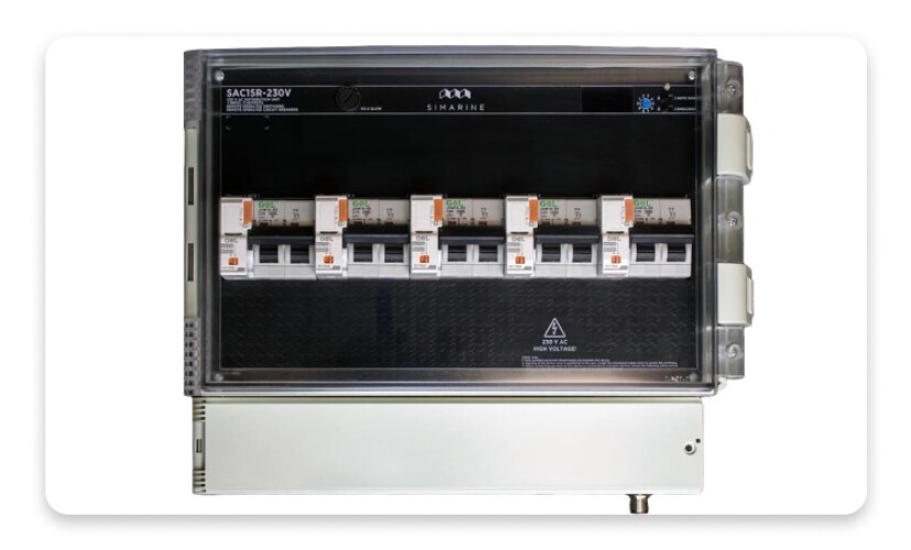 Модель SAC15R может не выглядеть самым эффектным устройством, но это крайне практичное решение. Данная панель распределения переменного тока (AC) интегрирована в сеть NMEA 2000, что позволяет контролировать автоматические выключатели (115/240 В) прямо с сенсорного экрана чарт плоттера или MFD. Устройство позволит судостроителям и владельцам возможность размещать автоматы в наиболее удобных местах, избавляя от необходимости тянуть высоковольтную проводку через жилые помещения к штурманскому столу, где обычно сосредоточены все выключатели.